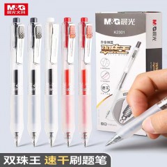 晨光(M&G)双珠王按动中性笔0.5mm子弹头学生用速干顺滑刷题笔 简约大容量软胶护套签字笔 黑色/红色 (12支/盒)