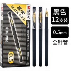 晨光(M&G)AGPA4002黑金系列中性笔0.5mm全针管黑色磨砂杆学生用考试水笔办公商务签字笔 (12/盒)