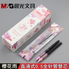 晨光(M&G)8012樱花雨系列直液式笔芯0.5mm黑色走珠笔替芯全针管中性笔芯 (10支/盒)
