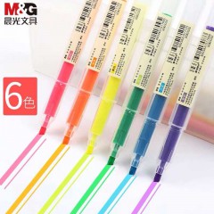 晨光(M&G)AHM24306本味系列单头荧光笔学生办公透明笔杆标记笔 6色 (12支/盒)