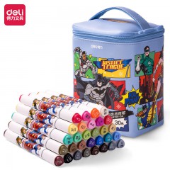 得力 HM100-30正义联盟马克笔涂色套装水彩笔记号笔多色速干马克笔画画 30色