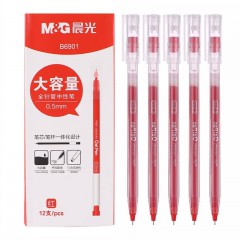 晨光(M&G)AGPB6901 水笔中性笔 巨能写大容量学生笔全针管拔帽笔 考试用学霸刷题笔 黑色/红色 0.5mm (12支/盒)