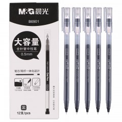 晨光(M&G)AGPY5501大容量中性笔 书写办公签字笔 全针管一体笔芯碳素水笔 0.5mm 黑色/蓝色/红色 (12支/盒)
