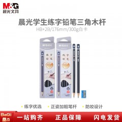 晨光QWP30987 三角木杆铅笔小学生书写绘画HB铅笔带橡皮头(12支/盒)