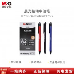 晨光ABPW3002 水感顺滑圆珠笔 办公按动中油笔 0.7mm 黑色/红色/蓝色 (40支/盒)
