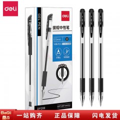得力 DP200 拔帽中性笔0.5mm子弹头 黑色 12支/盒