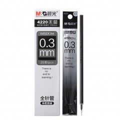 晨光(M&G)4220中性笔芯黑色全针管水笔子弹头水性笔替芯 0.3mm 黑色 (20支/盒)