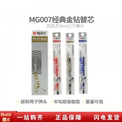 晨光MG007 金钻水笔芯0.5mm办公用签字中性子弹头拔帽笔替芯 黑色/红色/蓝色 (20支/盒)