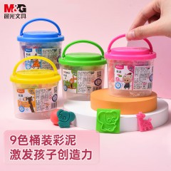 晨光文具9色桶装彩泥 可爱卡通 儿童手工DIY玩具 橡皮泥套装 包装颜色随机AKE04001(一桶装)