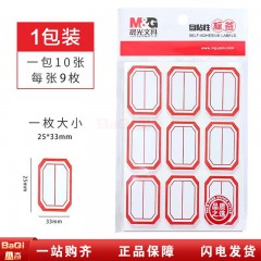 晨光YT-11 手写长方形钥匙标签贴纸自粘性不干胶便利文具标价贴(10张/包 9枚/张)