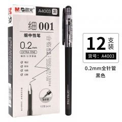 晨光(M&G)AGPA4003细笔尖中性笔学生办公用0.2mm全针管水笔签字笔 黑色 (12支/盒)
