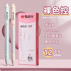晨光(M&G)AGP83001裸色控系列按动中性笔0.35mm针管学生用极细黑笔 (12支/盒)