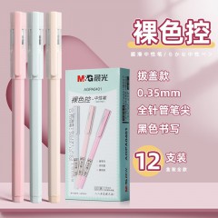 晨光(M&G)AGPA0401裸色控系列按动中性笔全针管学生用笔按压式水笔签字笔小清新文具用品 0.35mm 黑色(12支/盒)