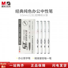 晨光GP1390 白色笔杆中性笔高颜值办公签字笔韩国小清新学生创意简约碳素水笔刷题笔0.5mm 黑色/蓝色/红色 (12支/盒)