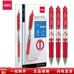 得力 DP201 按动中性笔0.5mm子弹头 红色 12支/盒