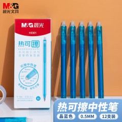 晨光(M&G)AKPH3301热可擦中性笔 子弹头签字笔 水笔 0.5mm 黑色/晶蓝色 (12支/盒)