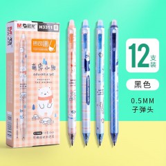 晨光(M&G)AKPH3311热可擦中性笔萌宠小物系列小学生按动子弹头热敏可擦笔 0.5mm 黑色/晶蓝色 (12支/盒)