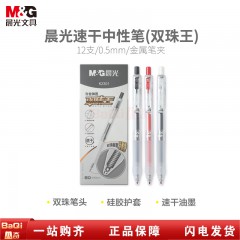 晨光AGPK2301 双珠王按动中性笔0.5mm子弹头学生用速干顺滑刷题笔 简约大容量软胶护套签字笔 黑色/红色 (12支/盒)