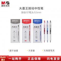 晨光AGPJ9001 大墨王按动中性笔学生考试用签字笔大容量笔芯书写顺滑简约中性笔 黑色/红色/蓝色 0.5mm (12支/盒)