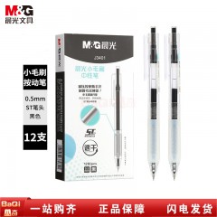 晨光AGPJ3401 小毛刷按动中性笔ST笔头签字笔软握学生用笔 0.5mm碳素笔简约办公水笔 黑色/红色(12支/盒)