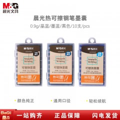 晨光AIC47634 热可擦黑色钢笔墨囊 3.4mm口径可替换钢笔油性墨水 0.9ml (10支/盒)