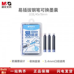 晨光ALC47634B1 钢笔墨囊3.4mm口径替换墨胆可替换热可擦钢笔墨蓝(10支/盒)