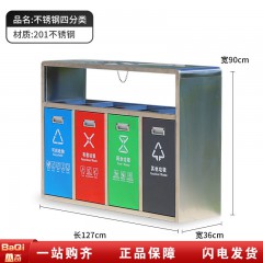 八奇 户外不锈钢连体四分类垃圾桶小区街道多分类收纳垃圾箱127*36*90cm