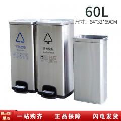 八奇 不锈钢脚踏30+30升两分类垃圾桶商用公用静音缓降