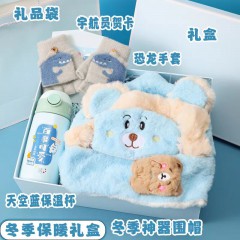 小学生男生女生精品新年冬季保暖套装(帽子围巾手套保温杯贺卡)【201】