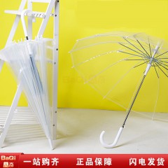 八奇 PVC透明雨伞 长柄透明加厚 白色