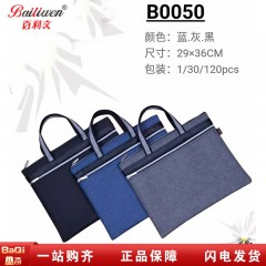 百利文 B0050 双层手提拉链袋文件袋事务包 灰/蓝