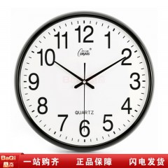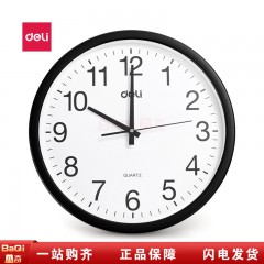 得力 9006 简约现代圆形时钟 电子时钟挂钟客厅钟表办公静音钟14英寸