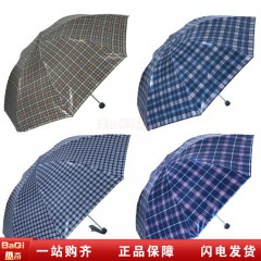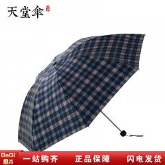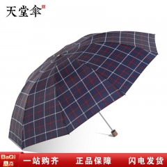 天堂 19359D 伞格子伞男女三折叠伞三人超大十骨双人遮阳伞商务两用晴雨伞 色丁格61cm*10K