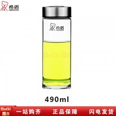 希诺 玻璃杯单层加厚男女士商务办公泡茶杯耐热便携车载水杯XN-6017 490ml