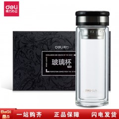 得力 8988 玻璃杯 双层保温杯双层玻璃杯水杯320ml