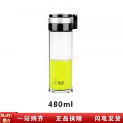 希诺 单层玻璃杯带盖便携大容量水杯创意办公室泡茶杯过滤运动杯子XN-6075 480ml