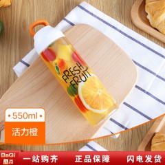 乐扣乐扣 550ml水果塑料水杯 运动水壶便携防漏学生男女士随手杯HLC688 活力橙