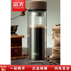 富光 WFB1013-400玻璃杯男女家用便携双层透明水杯带盖磨砂耐热大容量泡茶杯子 400ml
