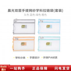 晨光ADM929WM 文件袋双层手提网纱学科袋拉链袋套装(4个/套)