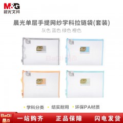 晨光ADM929WL 文件袋单层手提网纱学科袋拉链袋套装(数学+英语+语文+综合)
