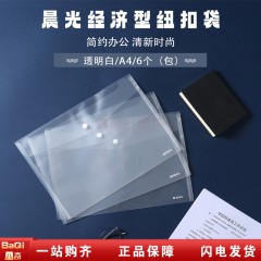 晨光ADM945E8 普惠型A4透明文件袋纽扣袋(6个/包)