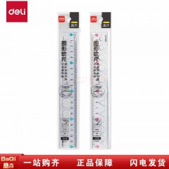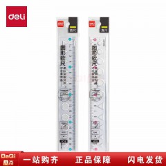 得力V756时尚色彩仪尺20CM小学生专用带波浪线绘图直尺