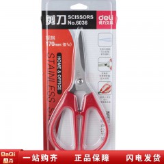 得力6036红色办公剪刀家用缝纫厨房剪刀不锈钢锋利剪纸刀