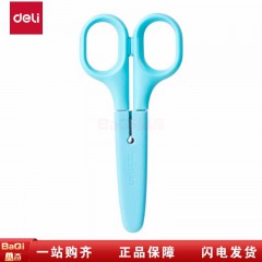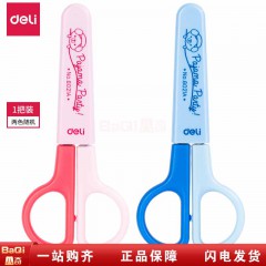得力6022蓝色可爱文具学生手工DIY圆头小剪刀