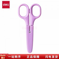 得力6022紫色可爱文具学生手工DIY圆头小剪刀