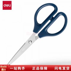 得力0602蓝色办公家用剪刀不锈钢手工剪纸刀开箱拆快递