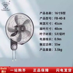 钻石牌FB-40-8 16寸8型壁扇家用静音壁挂式大风力工业摇头挂壁电风扇
