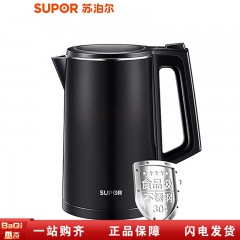苏泊尔SW-15J319 电热水壶家用烧水壶304不锈钢自动断电保温开水1.5升茶壶1.7L可选 黑色