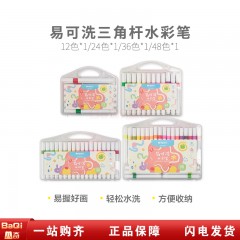晨光ACP901AW 易可洗三角杆水彩笔 儿童学生专用画笔套装水溶性涂色美术绘画涂色笔涂鸦笔(48色/盒)