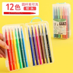 晨光ZCPN0383 软头水彩笔食品级可水洗幼儿园儿童小学生绘画专用涂鸦笔大容量彩色笔套装(12色/盒)